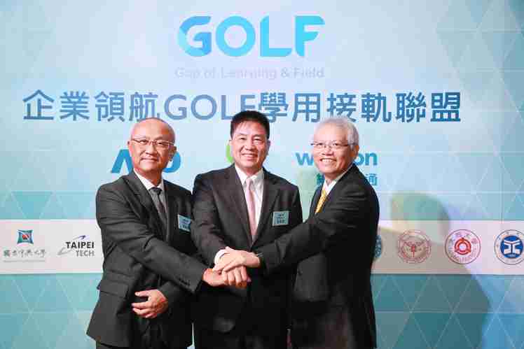 william威廉中文官网、、仁宝、、纬创三大企业领航发起GOLF学用接轨联盟 (图左到右:纬创总经理暨执行长黄柏漙、、william威廉中文官网董事长暨执行长彭双浪、、、、仁宝总经理暨执行长翁宗斌)