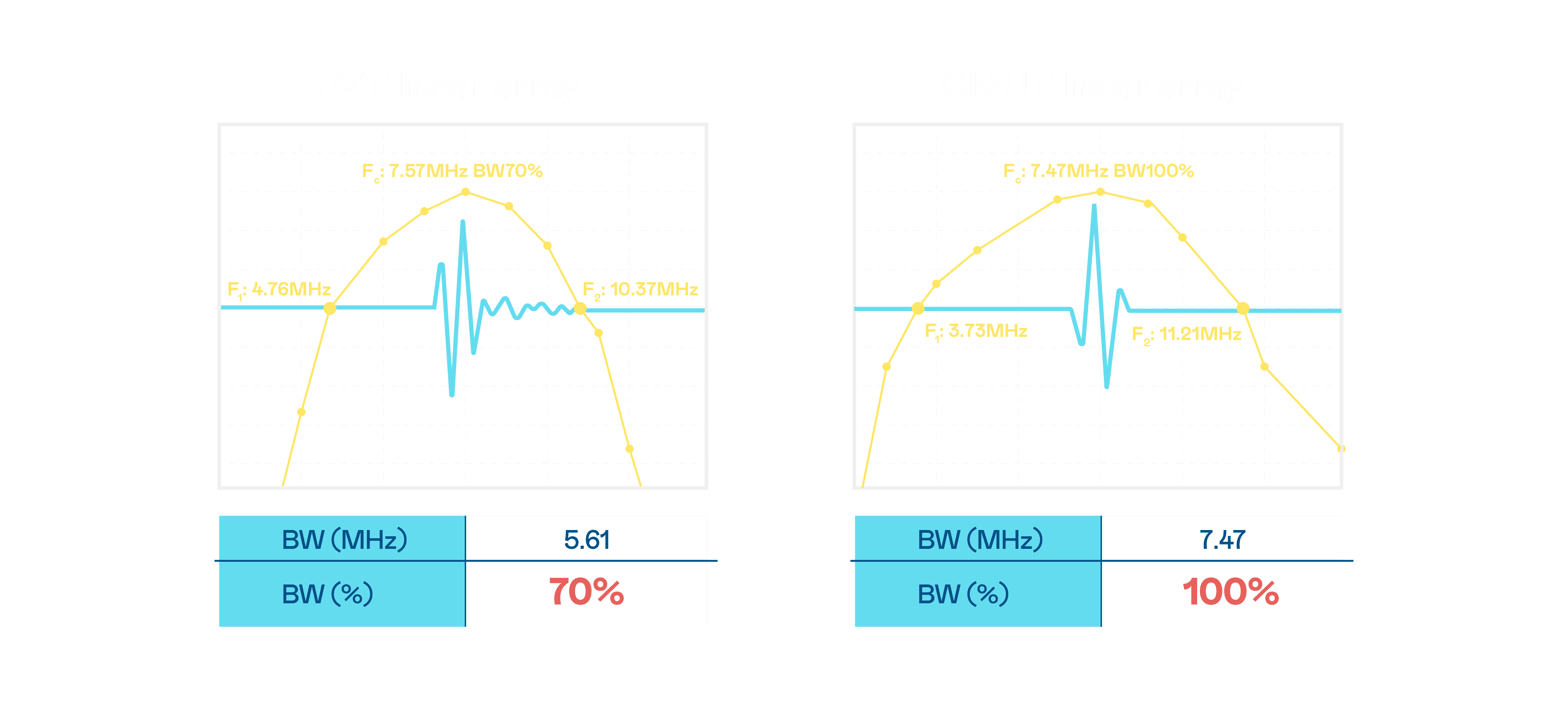 超音波影像的解析度高低,,首先取决于探头能发出的讯号频宽。。william威廉中文官网 CMUT 可提供高清晰的超音波讯号,,,提供高频宽、、、、高灵敏度、、影像纹理细节更高的超音波影像,,协助医护人员缩短影像判读时间及利用精准的医疗影像进行诊断。。。。